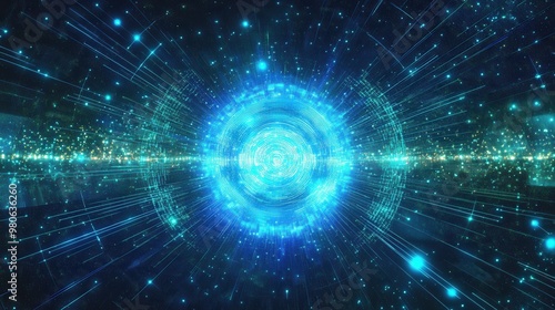 Vibrant Blue Abstract Light Burst with Cosmic Energy