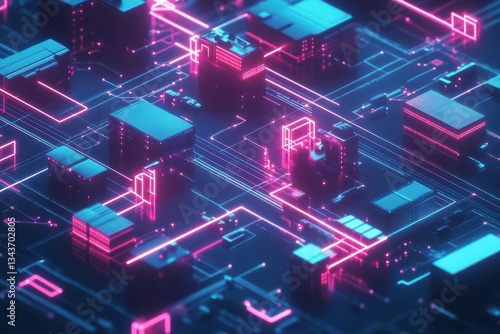 Vibrant Blue and Pink Abstract Background Featuring Numerous Glowing Cubes Creating a Dynamic and Energetic Visual Experience for Creative Projects