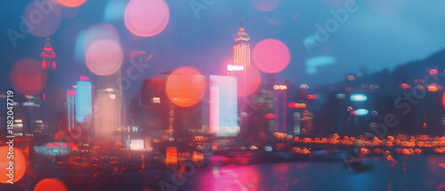 Vibrant cityscape at night with blurred lights and dynamic color effects