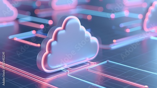 Vibrant Cloud Computing Illustration with Neon Lights and Digital Circuit Connections