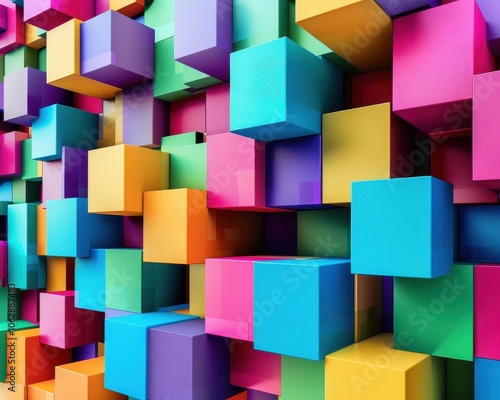 Vibrant colored cubes stacked together in an abstract pattern.