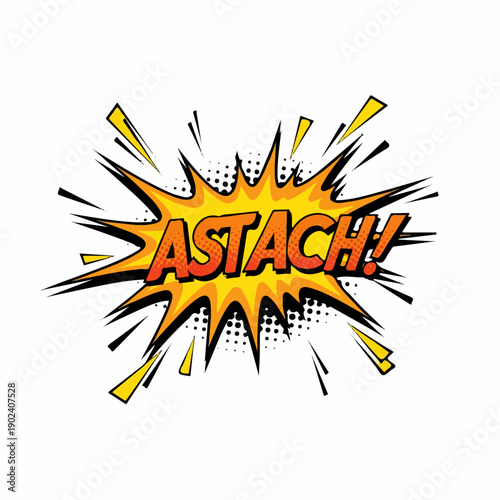 Vibrant comic speech bubble 'ASTACH!' pop art explosion design.
