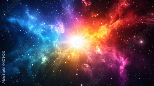 Vibrant Cosmic Nebula with Bright Stars, A vibrant cosmic nebula with bright stars and colorful gas clouds in space