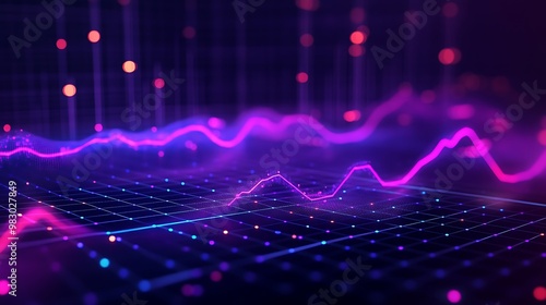 Vibrant Data Visualization: Financial and Technological Analytics with Neon Grid Highlights