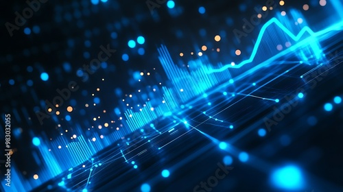 Vibrant Data Visualization: Financial and Technological Analytics with Neon Grid Highlights