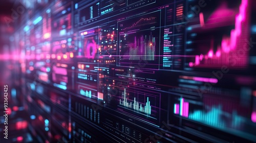 Vibrant data visualization graphics showcasing dynamic charts and graphs in a futuristic digital interface.