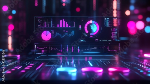 Vibrant data visualization with graphs and metrics on a digital interface, showcasing modern technology and analytics.
