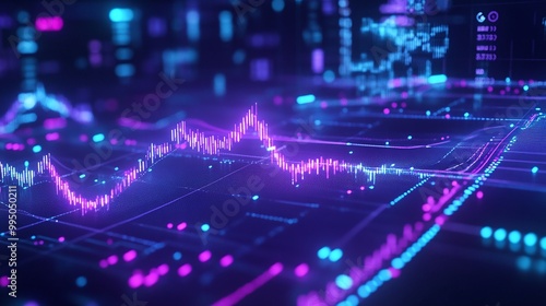 Vibrant digital data visualization with colorful graphs and charts on a dark background.