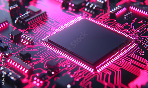 Vibrant Electronic Circuit Board with Neon Pink Highlights