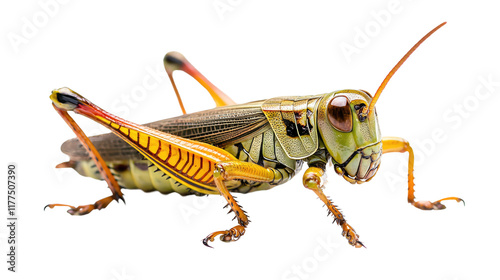 Vibrant Grasshopper Closeup Studio Photography