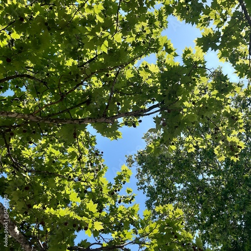 Vibrant green oak trees tops