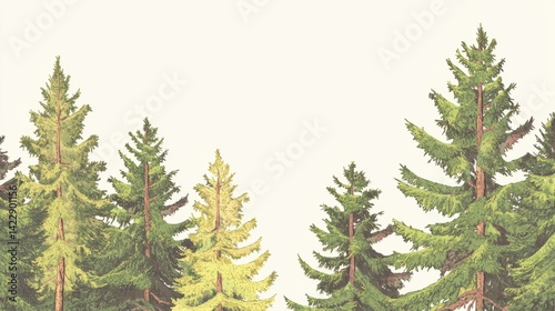 Vibrant Illustration of Green Pines with Subtle Background Color