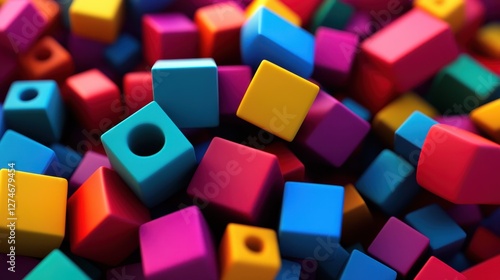 Vibrant multicolored cubes piled together creating a dynamic and playful abstract pattern