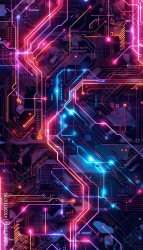Vibrant neon api interface design showcasing connection schemes and text area on dark background
