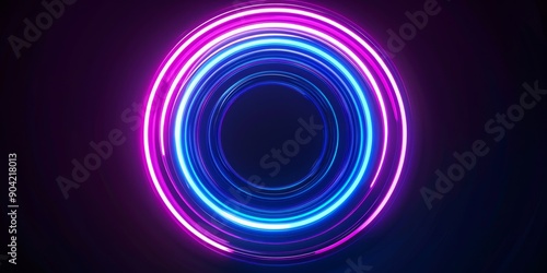 Vibrant neon circular pattern with blue and pink light on dark background, creating striking visual impact