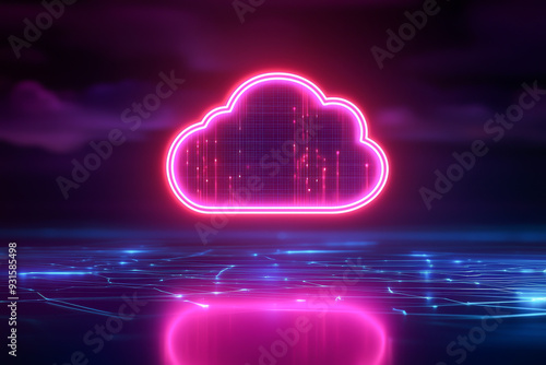 Vibrant neon cloud graphic with digital effects, representing cloud technology and modern data storage solutions.
