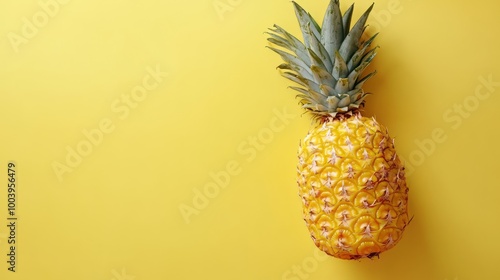 Vibrant Pineapple Slice on Sunny Yellow Background