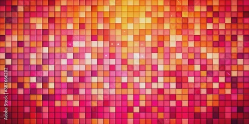 Vibrant pink and orange pixel squares form a mesmerizing abstract pattern on a colorful background, creating a modern and trendy wallpaper or design element.
