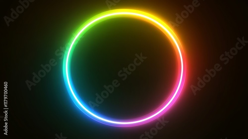 Vibrant Rainbow Neon Circle Glowing Dark Background