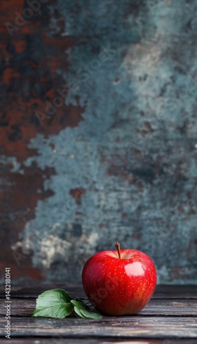 Vibrant red apple on rustic wooden surface