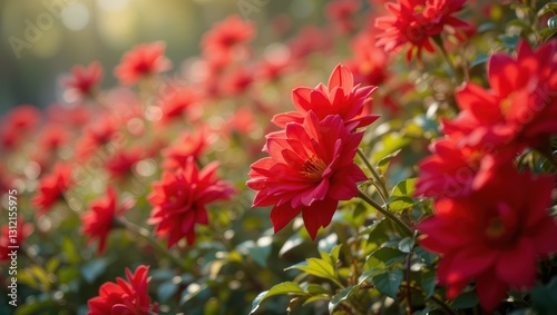 Vibrant Red Roses Blooming in a Sunlit Garden During Spring Season
