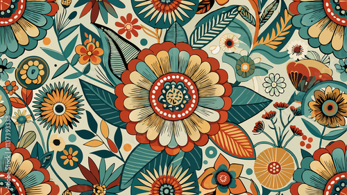 Vibrant Retro Vintage Floral Pattern Design, seamless pattern