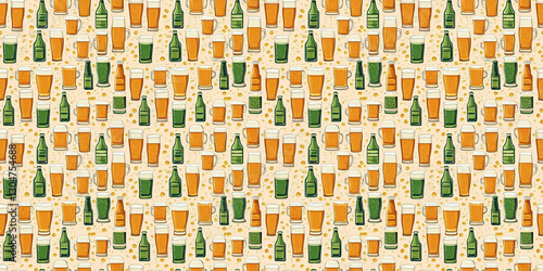Vibrant seamless pattern featuring various beer types and bottles ideal for unique design projects. Pattern Beer