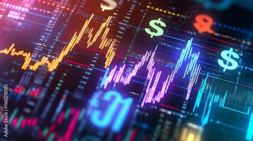 Vibrant stock market data displayed on a screen, showcasing dynamic financial information.