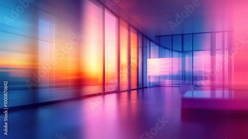 Vibrant Sunset Reflections in Contemporary Space