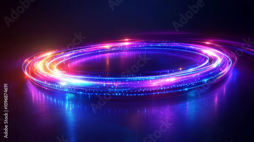 vibrant swirl of purple neon light creating a dynamic abstract pattern on a dark background symbolizing creativity energy and futuristic technology glowing with a captivating light effect