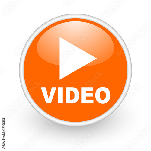 video orange circle glossy web icon on white background