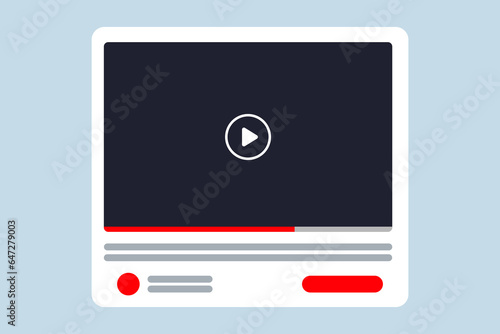 Video player in a flat style. Website template design. Mockup for web site design. Isolated vector web elements.