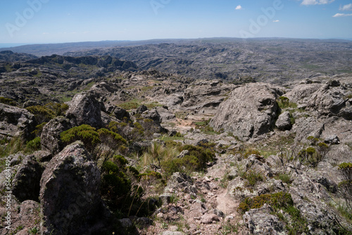 View of the rocky hills seen from the top of the rock massif Los Gigantes in Cordoba, Argentina.