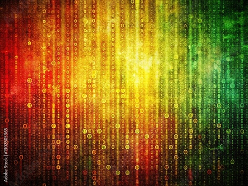 Vintage Abstract Digital Binary Code Background - Yellow, Red & Green