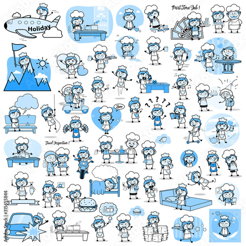 Vintage Comic Waitress - Set of Concepts Vector illustrations