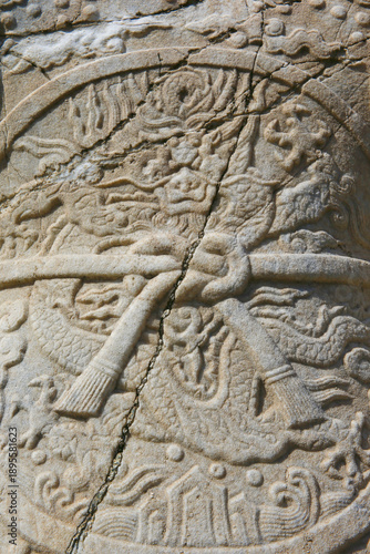 Vintage ornament on the stone. Close-up seamless texture. Stone texture. Embossed pattern.