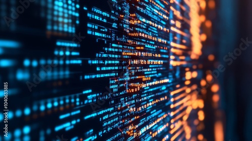 Virtual algorithm analysis, complex data visualizations, holographic screens, tech background