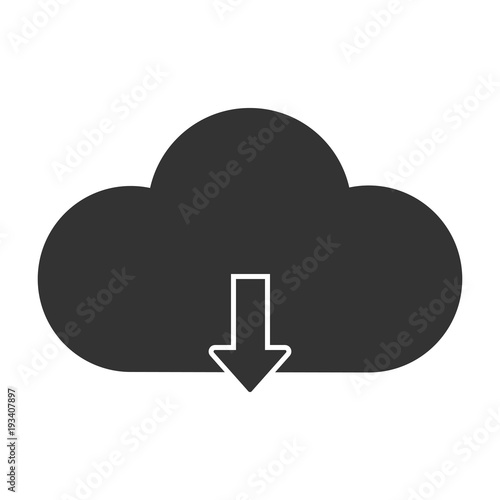 Virtual cloud download icon. Flat vector illustration in black on white background.