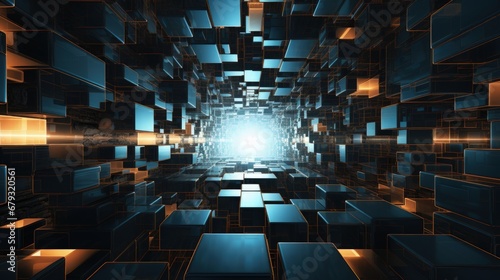 Virtual Construction Series. Backdrop composed of rectangular design elements in perspective and suitable for use in the projects on science, computers and technology
