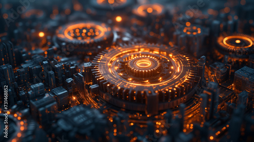 Virtual gears. Business agility concept. Mechanical and digital integration.