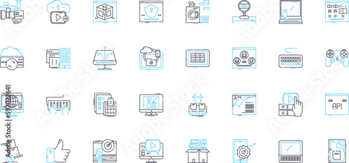 Virtual intelligence linear icons set. Automation, Machine learning, Robotics, Cybersecurity, Analytics, Efficiency, Prediction line vector and concept signs. Decision-making,Innovation Generative AI
