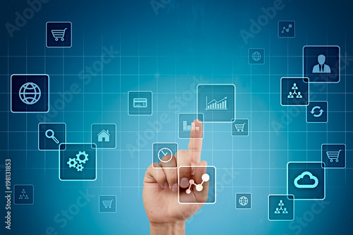 Virtual screen interface with applications icons. APPS. Strategy planning Internet technology concept.