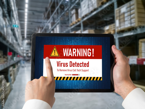 Virus warning alert on computer screen detected modish cyber threat , hacker, computer virus and malware