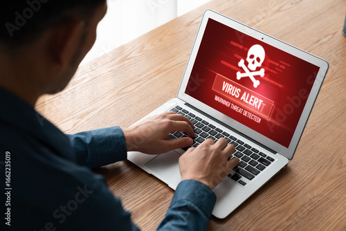 Virus warning alert on computer screen detected modish cyber threat , hacker, computer virus and malware