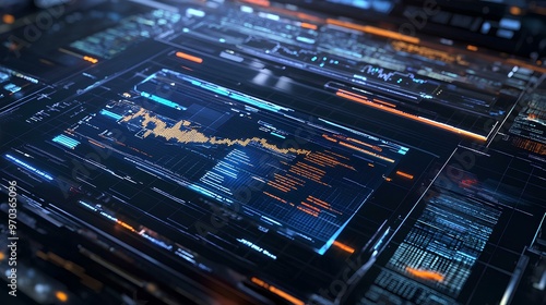 Visual interface of stock trading algorithms interacting with live market feeds on a futuristic screen