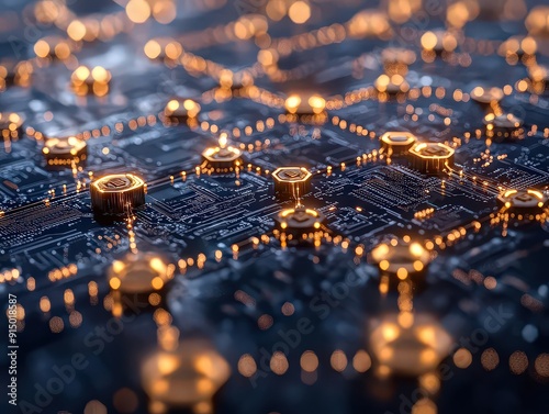 visual representation of blockchain technology, showing interconnected blocks and nodes in a network.