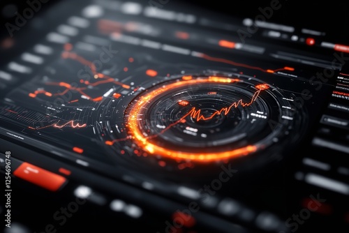 Visual representation of data analytics software displaying real-time performance metrics and trends in a modern sleek UI design
