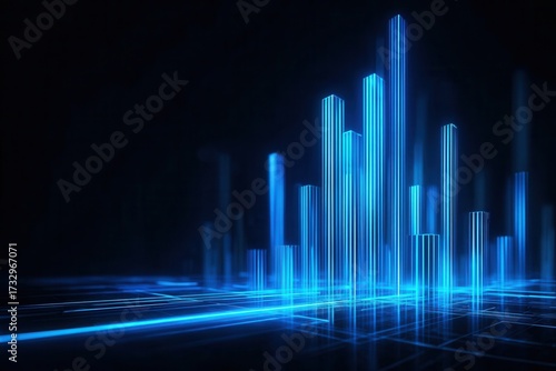 Visual Representation of Data With Glowing Blue Bars in Dark Space