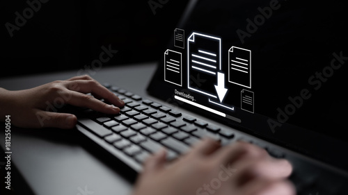 Visual representation of digital document downloading, showing file transfer, data access, and progress status for secure and efficient information retrieval Latch