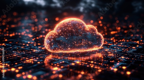 Visualization of cloud computing using a digital globe and icons symbolizing global connectivity and access.
